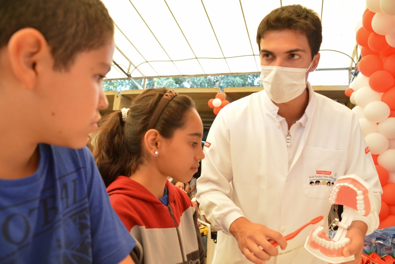 recebem instruções sobre como escovar os dentes de forma correta, fazem