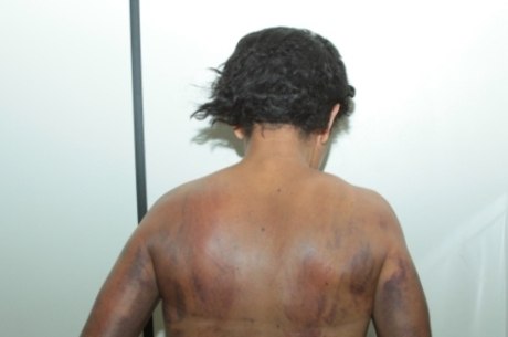 Vítima foi atendida com hematomas por todo o corpo.